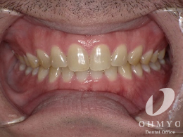 奥歯の咬み合せにも安定という意味で問題があったため、仮歯で咬み合わせ治療と前歯の審美回復治療。