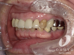 かぶせる隙間がなく、咬み合せに問題があるため、咬み合せ治療により審美機能回復
