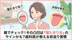 固まってしまった「寝たきり舌」を解消し、圧痕のない「美舌」を目指しましょう。