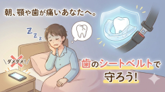 - 万が一の強い力に備えて、寝る時はマウスピース(歯のシートベルト)を装着すること